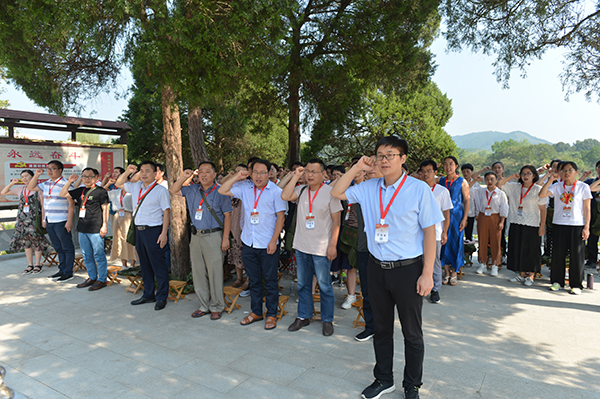 现场教学中,学员们在鄂豫边中心区第一个农村党支部成立纪念地、箭厂河革命旧址群等教学点听取现场讲解,了解大别山革命的历史、特点和重要地位,深刻领悟在艰难战争岁月中大别山精神的内涵和时代价值。在鄂豫边中心区第一个农村党支部成立纪念地,重温入党誓词,聆听学院老师“牢记入党誓词,不忘初心使命”专题教授,学习革命先烈事迹,缅怀革命前辈卓越功勋。学员们奔赴“红田”惨案遗址追悼烈士,亲手折叠小白花祭奠烈士。在列宁小学,学院老师围绕“誓死跟党走”,探讨大别山革命红旗不倒的原因及伟大意义,给学员们上了生动的一课。