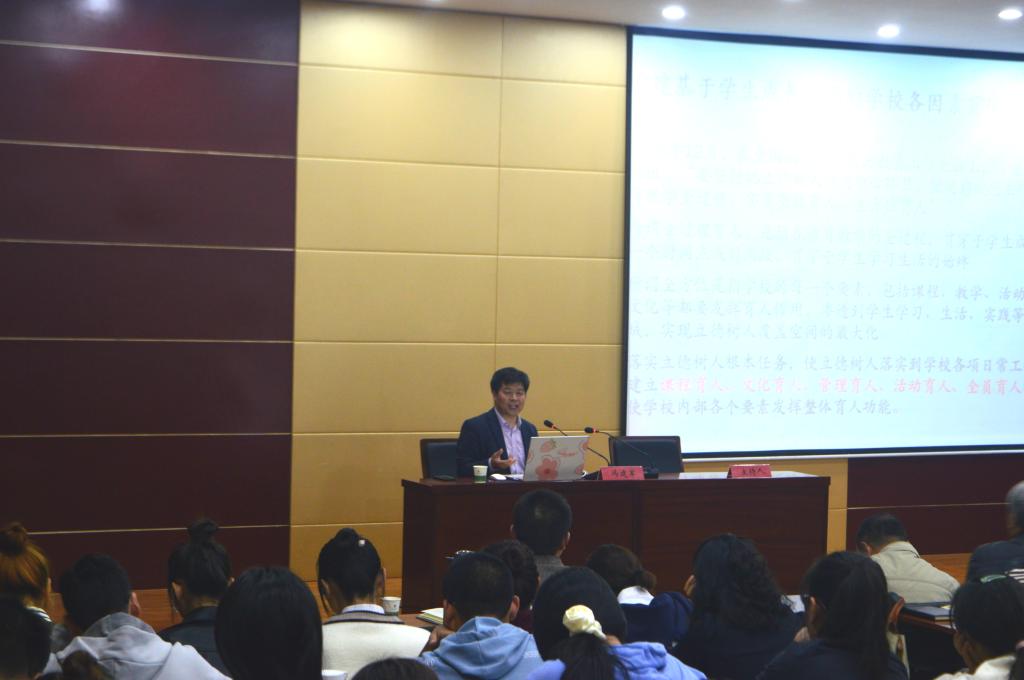 在出席第二届民办高等教育论坛期间,应学校邀请,著名德育专家、南京师范大学教育科学学院副院长、博士生导师冯建军教授在图书馆报告厅为教育学院师生作了以“构建立德树人的时代内涵与落实机制”为题的学术报告。此次报告会由教育学院名誉院长主持,教育学院全体教师及200余名学生聆听了报告。