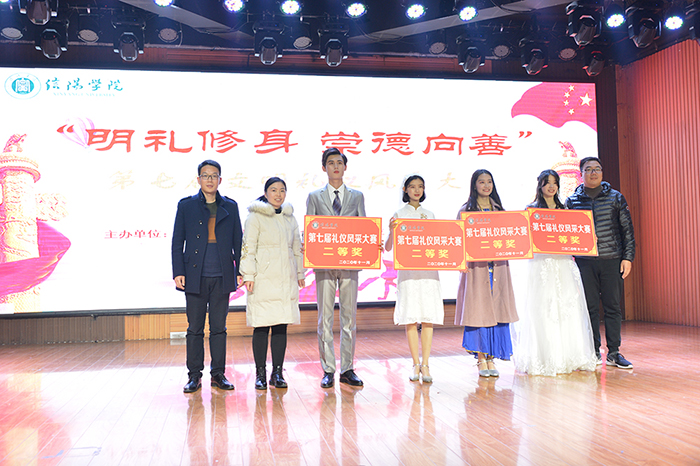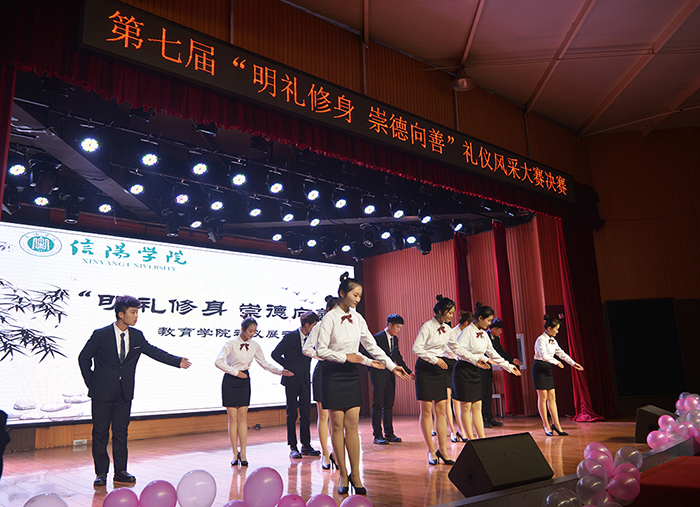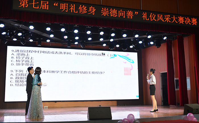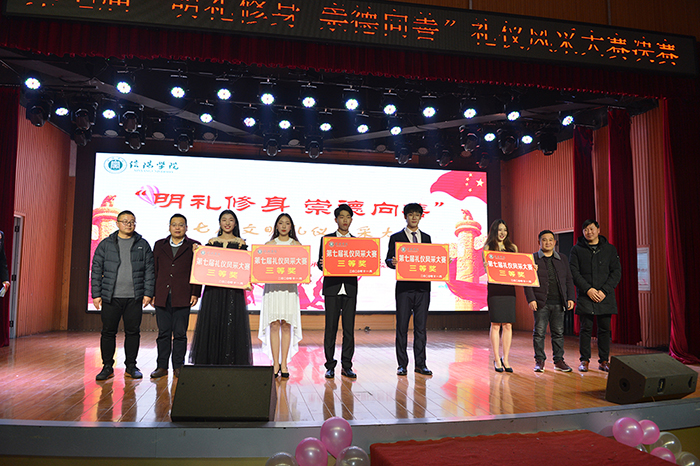 为加强校园优秀文化建设,浓厚迎评促建氛围,提升广大同学的文明礼仪修养,11月25日晚,由校团委主办、校礼仪队承办的“明礼修身、崇德向善”第七届礼仪风采大赛在大学生活动中心举行。校党委专职副书记施昌海教授莅临现场观看指导。有关单位负责人张甲楠、李赟、胡志国、娄琪、李肖利、郑山峰、陈金强、袁军、万圆圆、柳琳及相关学院学工干事、团总支书记共同担任比赛评委。各学院学生代表500余人观看了本次比赛。