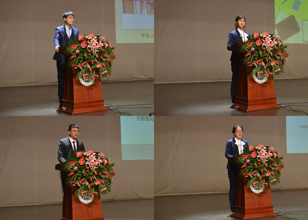 学风建设先进班集体代表2018级英语本科7班尹秀秀和大数据与人工智能学院2017级物联网工程本科1班岳昊旻分别发言。2018级英语本科7班全班同学坚持晨读和晚自习,“老带新”“一帮一”的学习互助小组,从入校时就发挥积极作用,该班大学英语四级通过率100%。2017级物联网工程本科1班针对专业课程基础薄弱问题,班里自行组织模拟考试,“以考促学”“以考促进”,形成全班比学赶超的优良学风。班里四分之一同学获得国家级专业竞赛奖项,上一学年无1人挂科。