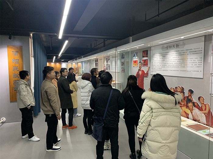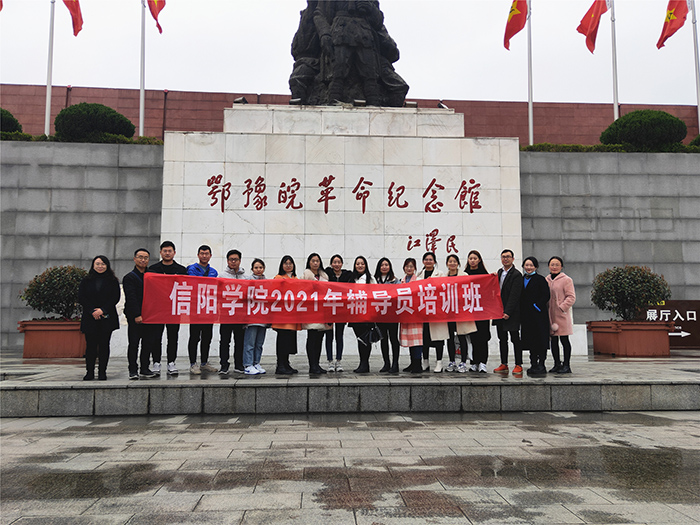 本次培训包括四个主题项目,分别是:团体心理素质拓展,通过心理破冰、趣味介绍、“排长龙”、“信任游戏”等环节,培养辅导员们团体凝聚力和归属感;主题文化沙龙,在我校信阳优秀传统文化传承馆举行,传承馆负责人陈金强简要介绍了信阳毛尖、剪纸、烙画、皮影戏等优秀传统文化,学生处、团委、党办相关负责人对学生资助、征兵入伍、心理健康、团日活动、入党程序等进行介绍,帮助新辅导员进一步熟知本职工作;参观鄂豫皖革命纪念馆,在讲解员的介绍下,辅导员们依次参观“大别风雷,星火燎原”“红军摇篮,将军故乡”“千里跃进,伟大壮举”等七个主题展厅,感受鄂豫皖革命根据地波澜壮阔的光辉历史;通过线上观看中国教育电视台的《我是辅导员》栏目,学习优秀辅导员的先进事迹,助力学生成长成才。