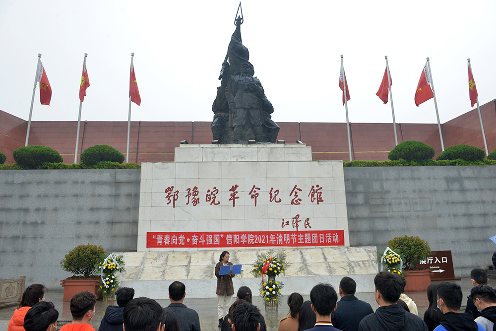 为深入开展党史学习教育,认真落实团中央、团省委“学党史、强信念、跟党走”学习教育工作部署,深切缅怀革命先烈,引领广大团员青年学习党史、铭记历史,4月2日上午,校团委在鄂豫皖革命纪念馆举行“学党史、强信念、跟党走”学习教育启动仪式暨“青春向党•奋斗强国”清明节主题团日活动。校团委和各团总支负责人及师生代表共40余人参加了本次活动。
