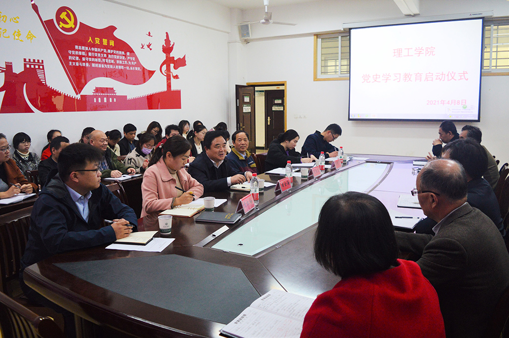 4月8日下午,学校理工学院在理工楼会议室举行党史学习教育启动仪式。党委书记褚金海出席启动仪式。理工学院院长肖生发、党总支书记张红梅、副院长李晓严及学院全体教师及学生党员代表参加了启动仪式。