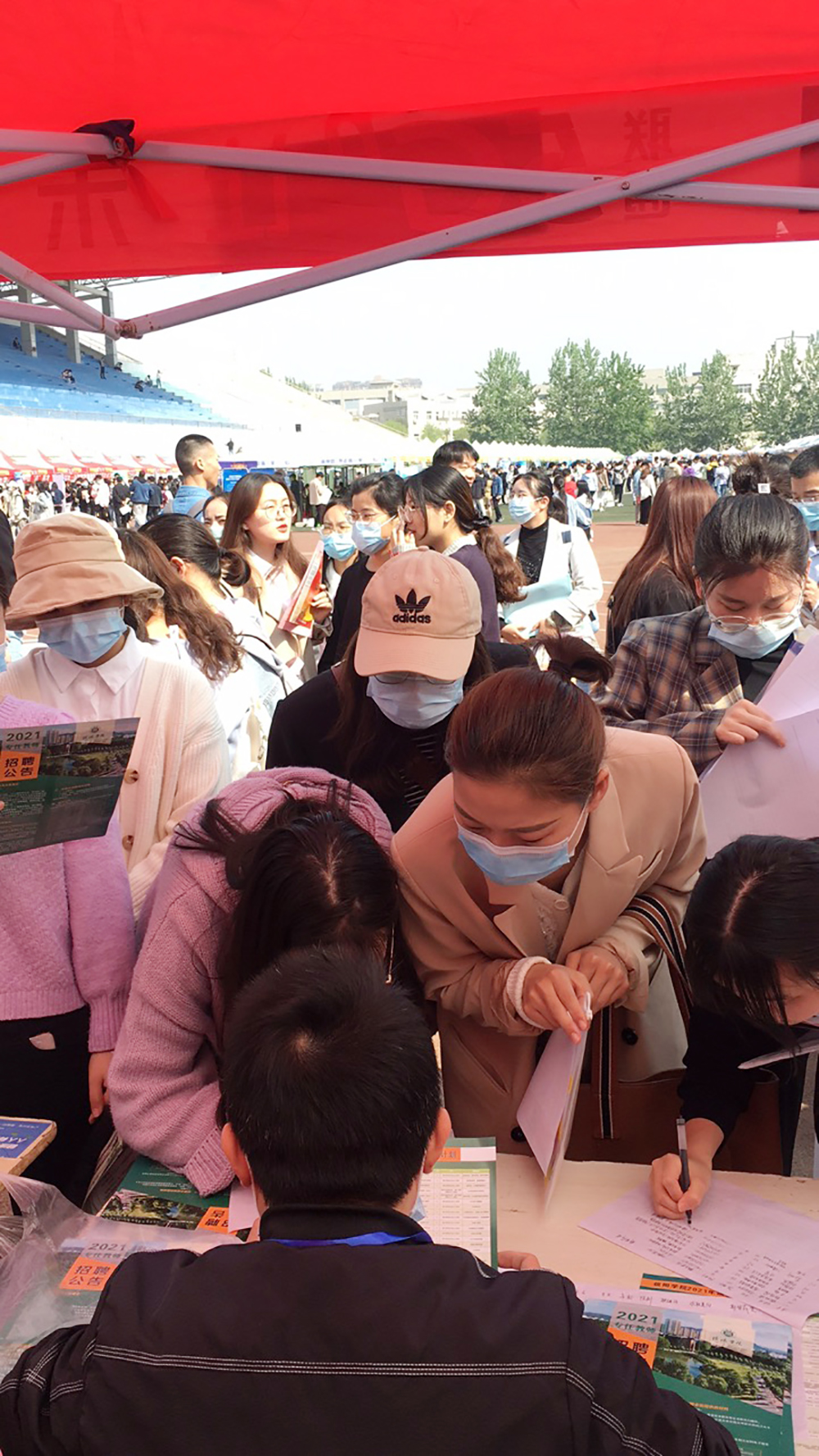 河南大学双选会网络公告发布后,我校人事处第一时间与会议举办方联系,准备宣传材料、摆放展位。大数据与人工智能学院及时安排人员会同人事处到会场开展招聘宣传。双选会现场气氛热烈,众多毕业生们驻足我校展台前主动咨询,详细了解学校情况与岗位需求,我校参会人员对毕业生的咨询给予了热情解答,会上共收到简历170余份。