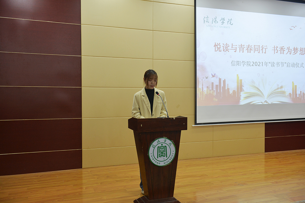 开幕式上,校团委书记郑山峰宣读了《关于举办“悦读与青春同行,书香为梦想护航”2021年读书节系列活动的通知》。教育学院2019级小学教育本科1班马微同学作了发言,分享了读书感悟。