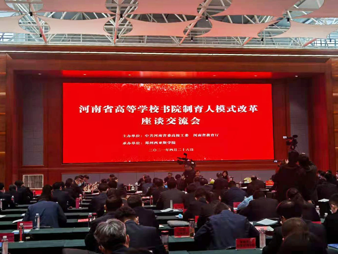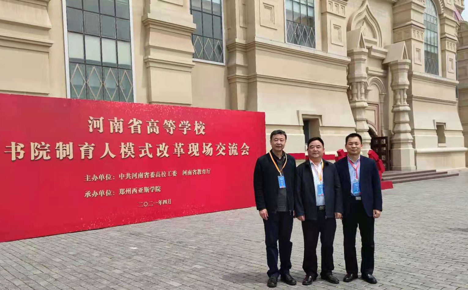4月25日至26日,河南省高等学校书院制育人模式改革现场交流会在郑州西亚斯学院召开。省委常委、省委宣传部长、省委高校工委书记江凌,省政府副省长霍金花,省政府副秘书长尹洪斌,教育厅厅长郑邦山等出席会议。我校党委书记褚金海、副校长王志华、校长助理张永志参加了会议。