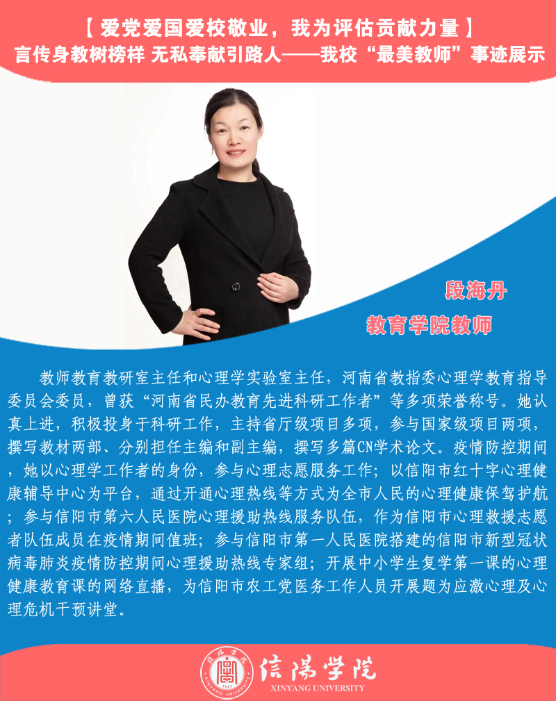 【爱党爱国爱校敬业,我为评估贡献力量】言传身教树榜样 无私奉献引路人——我校“最美教师”事迹展示