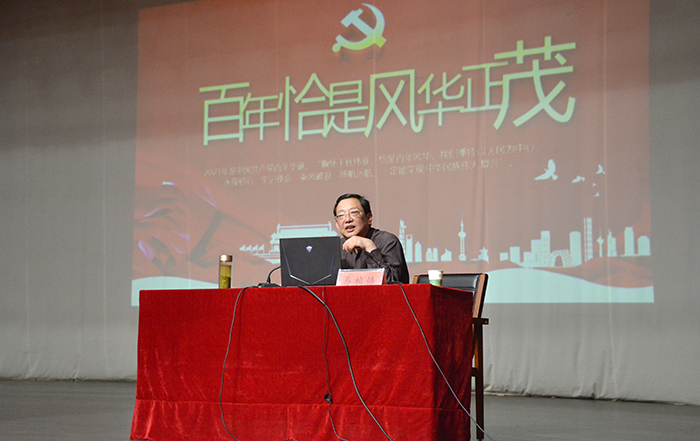 易桢悟从“准确理解百年党史的主题主线”“牢牢把握百年党史的主流本质”“不断汲取百年党史的精神营养和时代价值”“深入开展党史教育活动,为建设社会主义现代化强国提供智慧、经验和不竭动力”等四个方面做了详细讲解。他从历史唯物主义、大国崛起的前提和成功路径、中国共产党的历史选择,分析了一百年来党的历史发展主题和主线就是围绕“实现民族独立、人民解放”和“国家繁荣富强、人民共同富裕”两大历史任务展开。通过对党的不懈奋斗史、理论探索史和自身建设史,详细讲述了百年党史的主流本质。