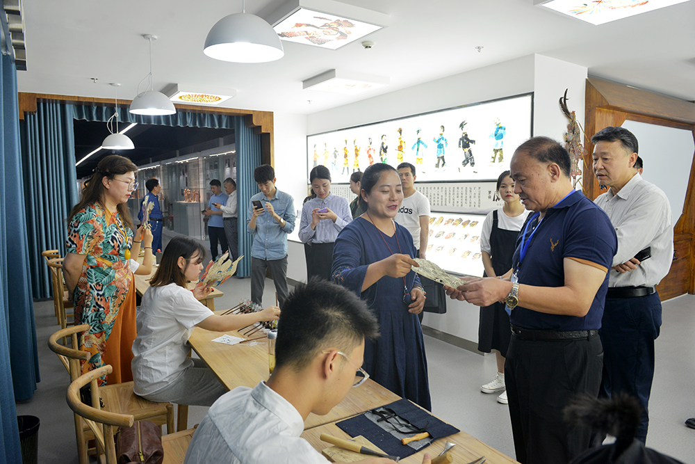 听取汇报后,专家组查阅了档案资料,并实地考察了我校信阳优秀传统文化传承馆、音乐厅、艺术展厅、艺术实训室、专家工作室等,与罗山皮影戏传人陈雨伦、祁平进行了亲切交流,观看了俏皮影社表演的《小猫米罗》、美术与设计学院的学生皮影制作兴趣小组现场制作、教育学院的幼儿舞蹈创编大赛节目以及社团活动等,对我校公共艺术教育工作给予了充分肯定,同时提出了一些重要的指导意见。