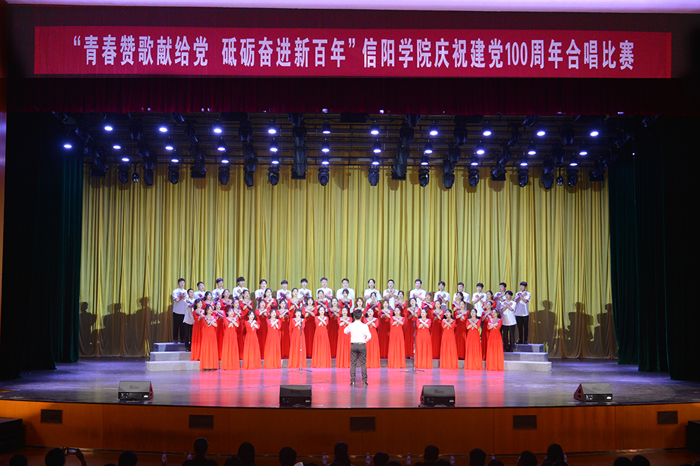 外国语学院合唱队表演的《唱支山歌给党听》拉开了比赛帷幕。比赛中,各学院合唱队统一着装、队形新颖、精神饱满、歌声嘹亮。《强军战歌》《保卫黄河》《团结就是力量》《一二三四》《光荣啊,中国共青团》气势磅礴、铿锵有力、催人奋进;《我的中国心》《我和我的祖国》《爱我中华》《国家》《没有共产党就没有新中国》《歌唱祖国》《灯火里的中国》,热情讴歌了党的丰功伟绩,唱响了青年学子对党、对祖国的深厚挚爱和无比自豪之情;《当那一天真的来临》《祖国不会忘记》抒发了所有为党和国家默默奉献人们的心声;《少年》《新征程》《走向复兴》《不忘初心》表达了青年学生对党和国家的美好祝福,坚定了青年学生坚定跟党走、奋进新时代的决心;音乐学院表演的合唱《龙的传人》和原创作品《社会主义真的好》热情赞美社会主义制度的优越性,引导学生坚定社会主义信念、为党的新百年目标而努力奋斗,将比赛推向高潮。