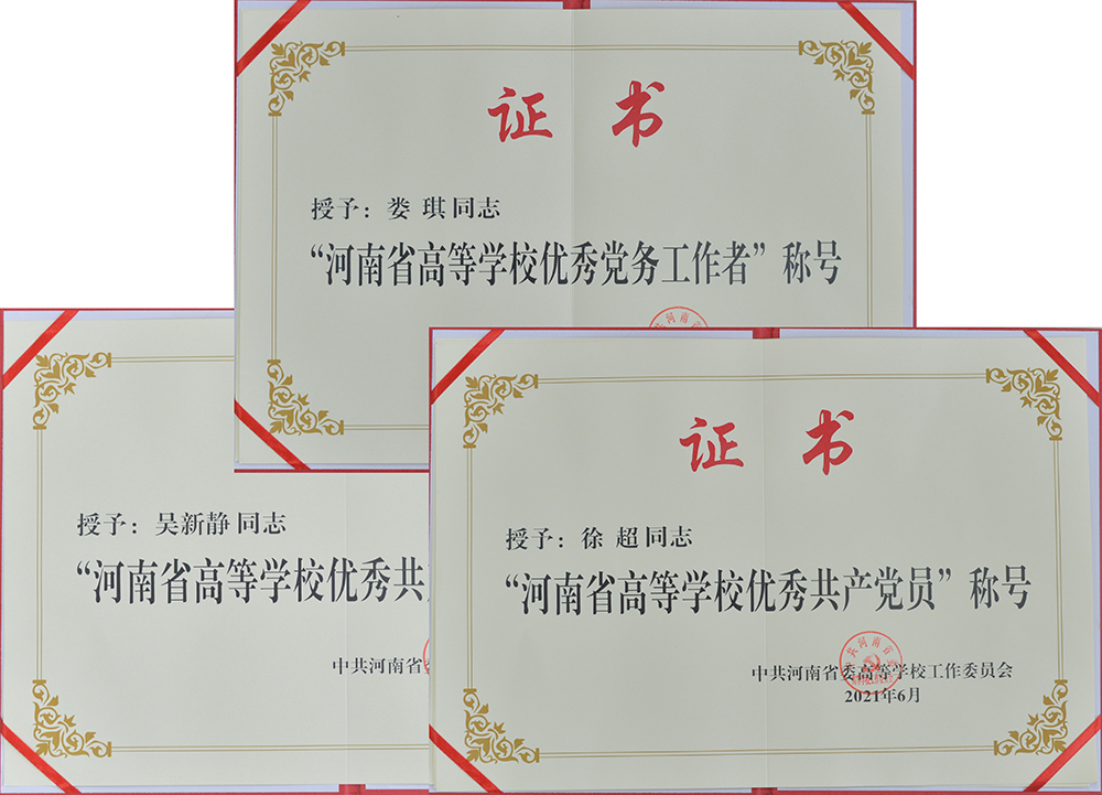 近日,为庆祝中国共产党成立100周年,进一步激励各级党组织和广大共产党员奋发进取、创先争优,展示新时代共产党员的良好形象和精神风貌,中共河南省委高校工委对全省200名优秀共产党员、100名优秀党务工作者和200个先进基层党组织予以表彰。