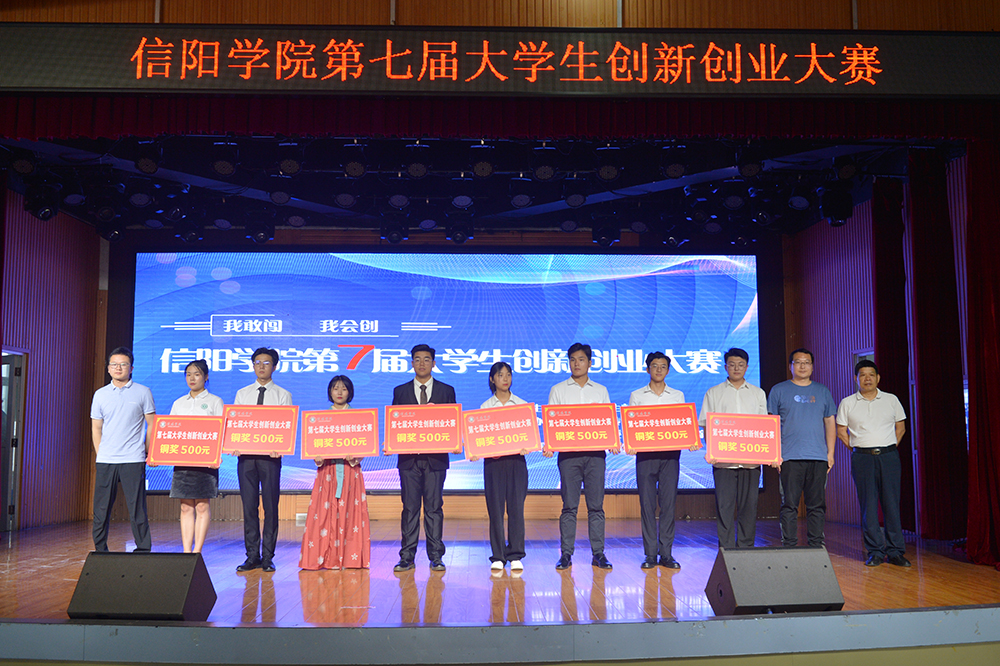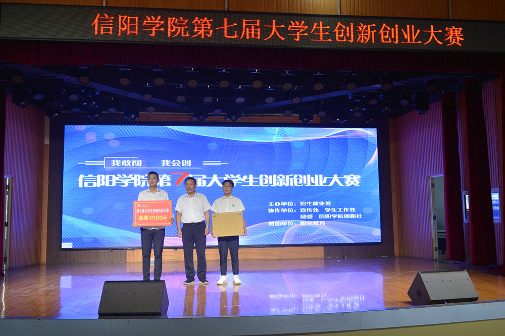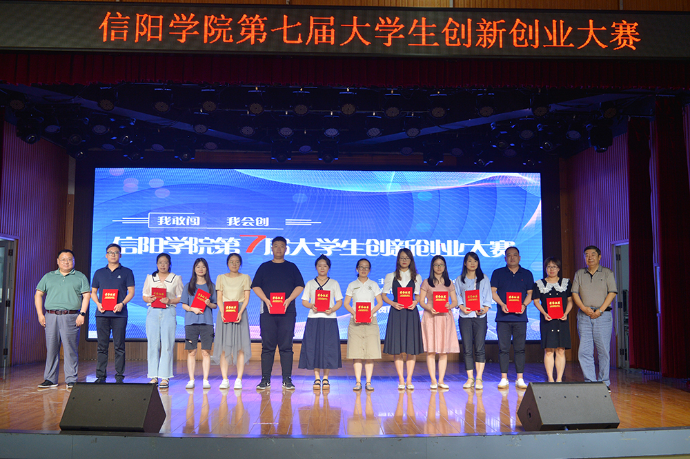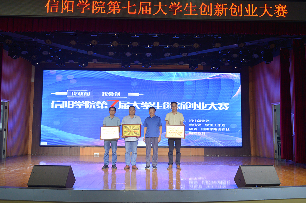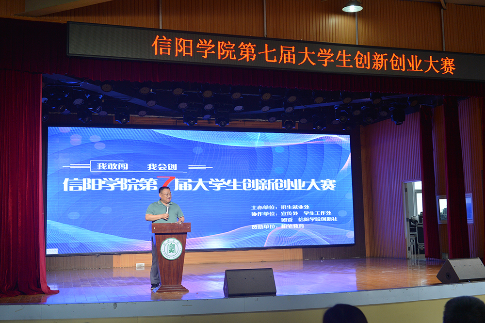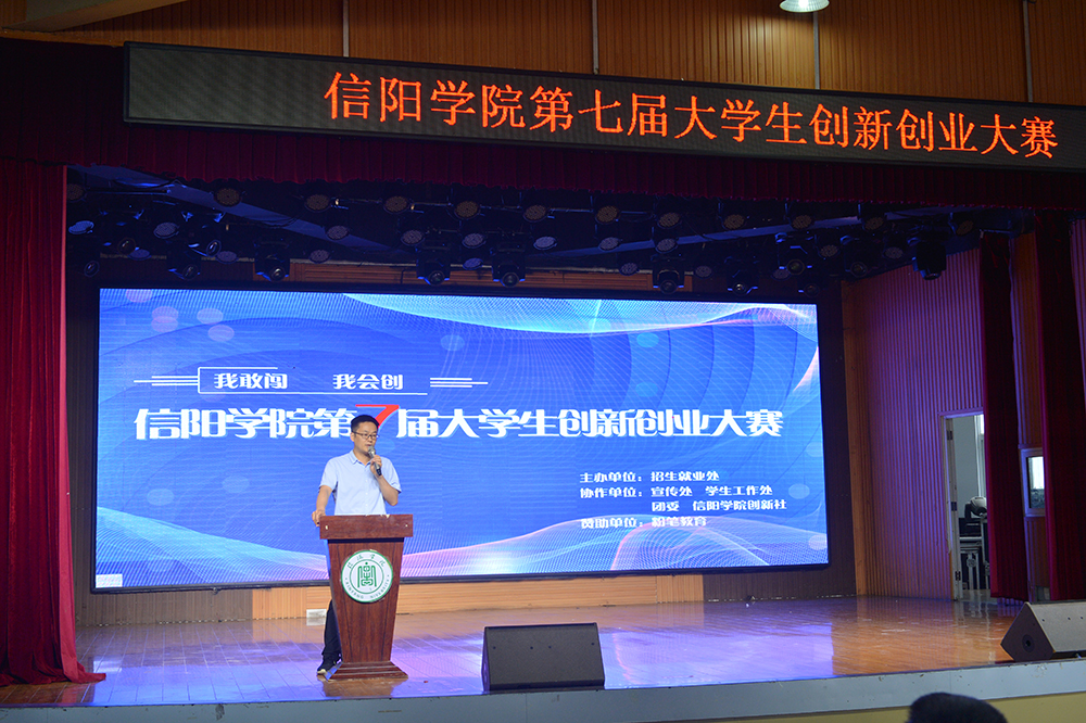 6月15日下午,“我敢闯 我会创”——信阳学院第七届大学生创新创业大赛决赛在学校大学生活动中心圆满举办。河南省大中专毕业生就业促进会副会长李建伟,信阳市科技局党组成员、副局长杨力,信阳市人社局四级调研员易援民,浉河区工信局副局长董方红,信阳市科技创新服务中心创新创业服务部主任林雨,黄河科技学院大学科技园主任蒋华勤,信阳市航信测控技术有限公司总经理李建国,粉笔教育河南分校教研校长刘婉霞,信阳粉笔教育校长张永军,我校党委专职副书记施昌海,校长助理杨高伟作为嘉宾和评委,出席了大赛。学校宣传部、团委等部门负责人一同担任评委,招生就业处负责人,各学院党总支书记、辅导员和学生代表现场观摩了大赛。