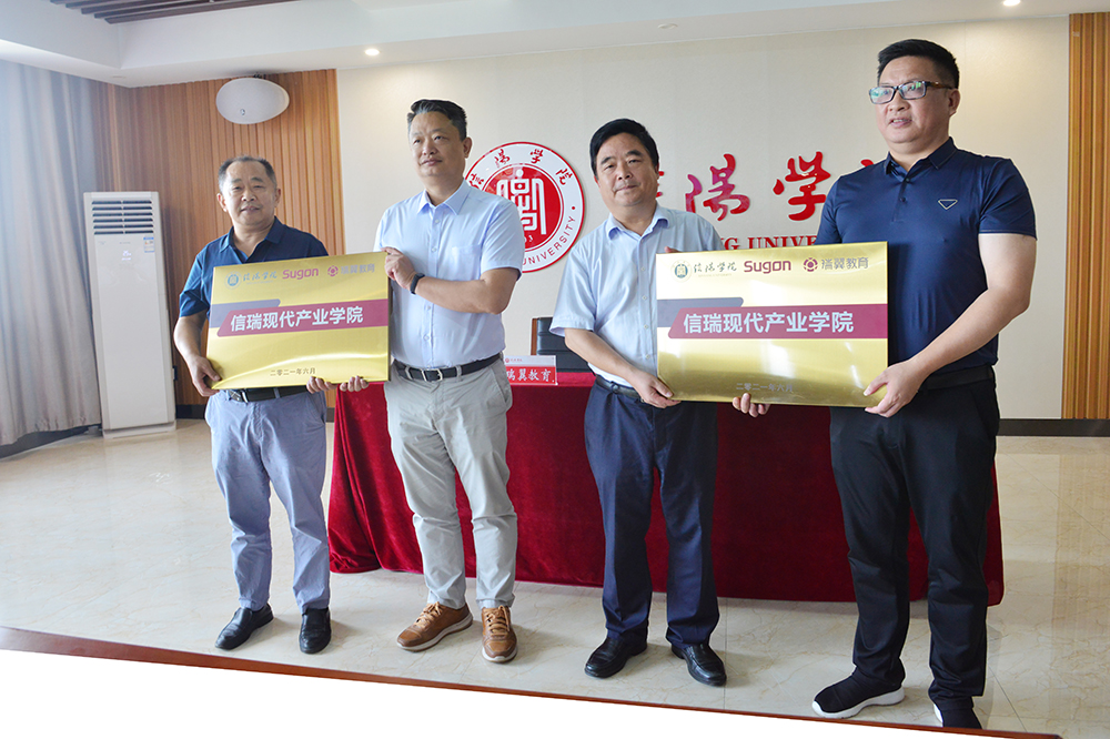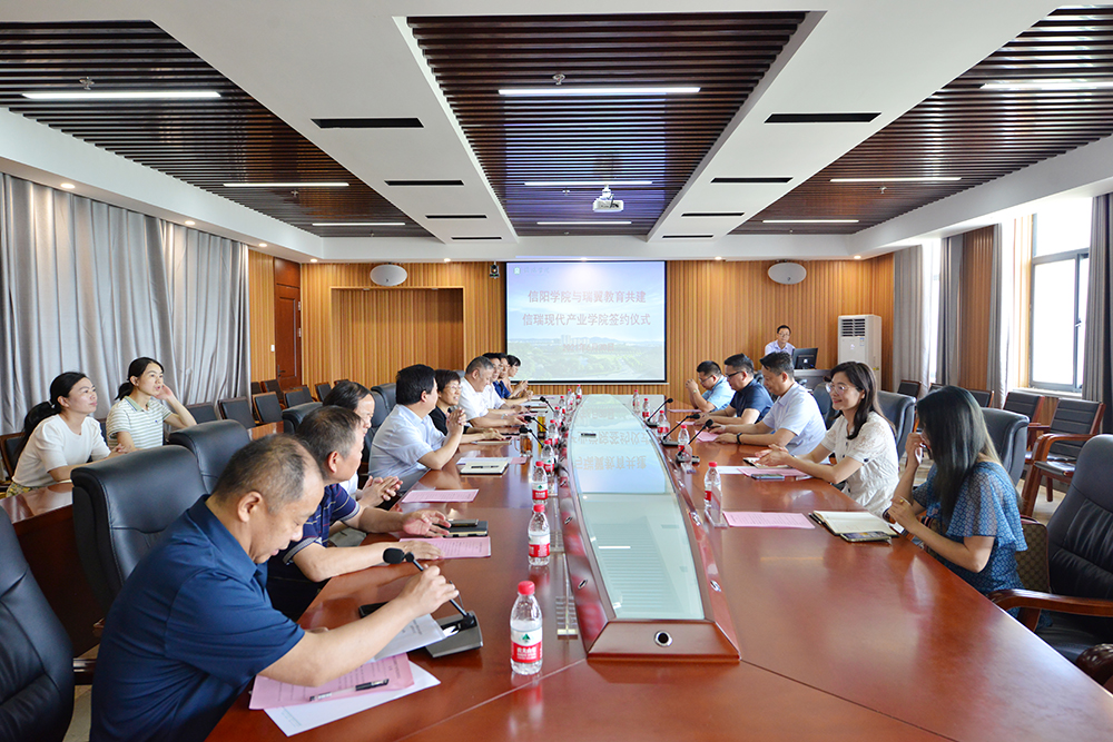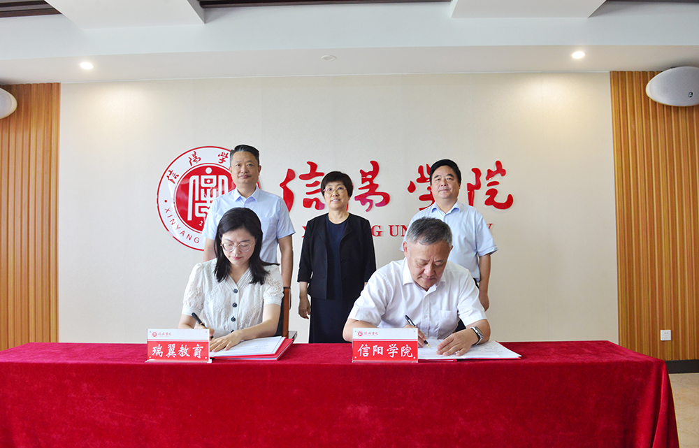 6月30日,我校与瑞翼教育集团共建信瑞现代产业学院签约仪式在综合楼1410会议室举行。瑞翼教育集团董事长谢鸥、副总经理林英、市场副总经理姚瑞泉、区域总监谭军军、河南区域经理马龙斌,我校理事长高云、党委书记褚金海、副校长王强出席仪式。理工学院院长肖生发、大数据与人工智能学院院长邬长安、教务处处长陈文涛、信息化建设与管理处处长汪国安、科研处处长江成顺等参加了仪式。江成顺主持了会议。