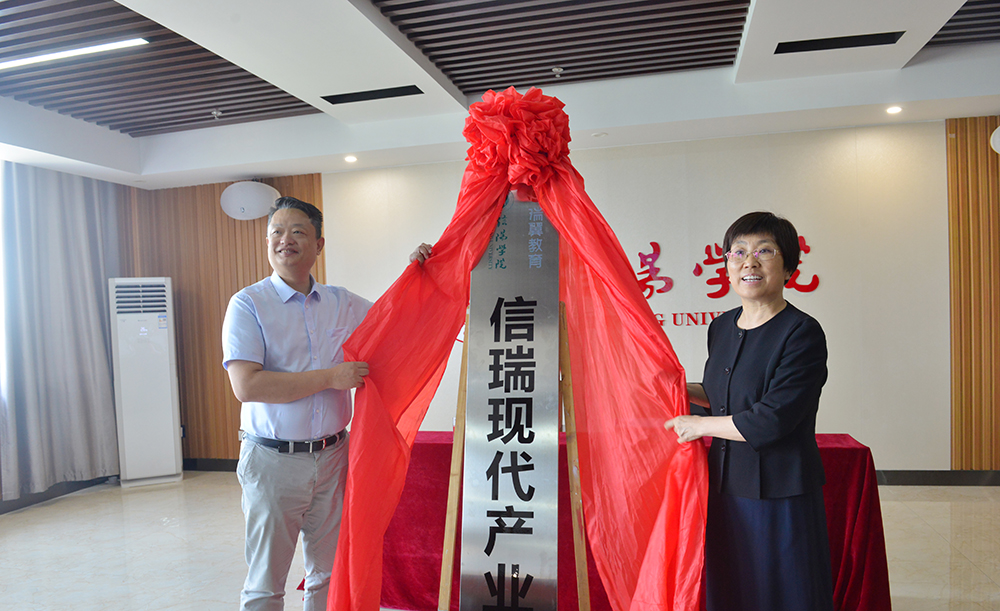 谢鸥与褚金海分别为信瑞现代产业学院授牌。