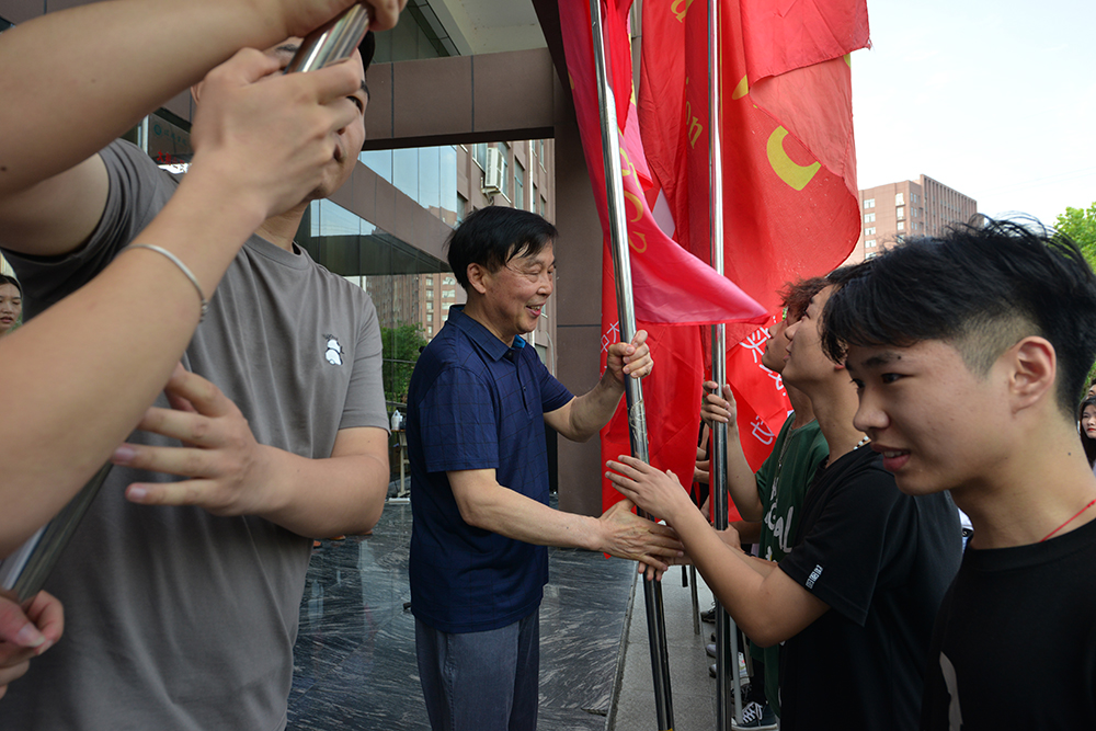 出征仪式上,施昌海为2021年暑期“三下乡”社会实践团队授旗。