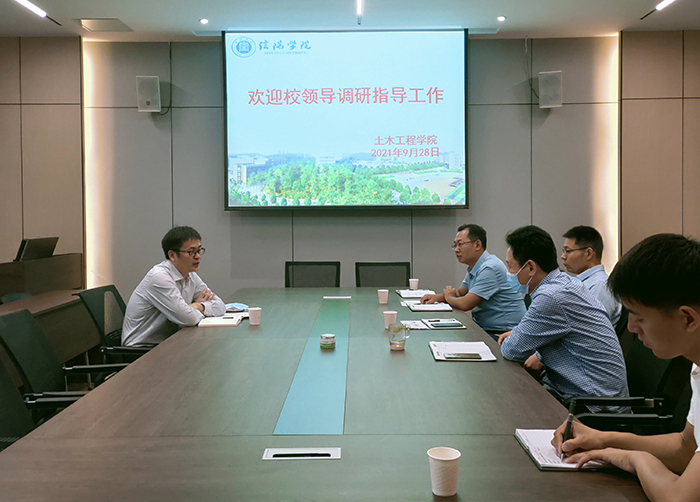 9月28日,杨高伟深入土木工程学院调研指导工作。学院名誉院长,党总支书记郭二军、教学副院长杨子泉和全体班子成员参加了座谈会。杨高伟肯定了过去一学年学院在迎评促建中取得的成绩,就近期工作提出要求。一要根据学校诊断评估工作安排,把握好时间节点,细化分工,明确责任;二要进一步完善措施,提高标准,做好演练,确保各环节顺利进行;三是通过“老带新”等方式,加强青年教师培养,提高教育教学水平,为学校评估做出贡献。