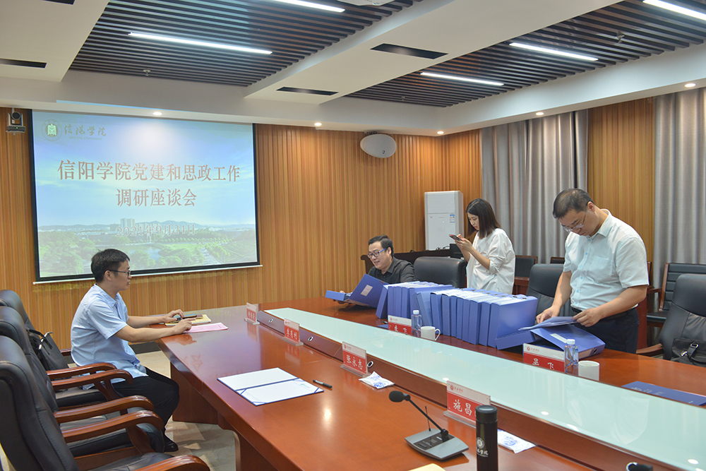 座谈会结束后,调研组采取小组分工的形式认真查阅了有关档案资料,组织干部教师代表进行问卷调查,与校领导、党群部门负责人等进行了个别访谈,深入文学院了解基层党组织政治功能发挥、“三会一课”落实情况等,并实地考察了信阳优秀传统文化传承馆,多角度、多层次、全方位调研学校党的建设和思想政治工作。