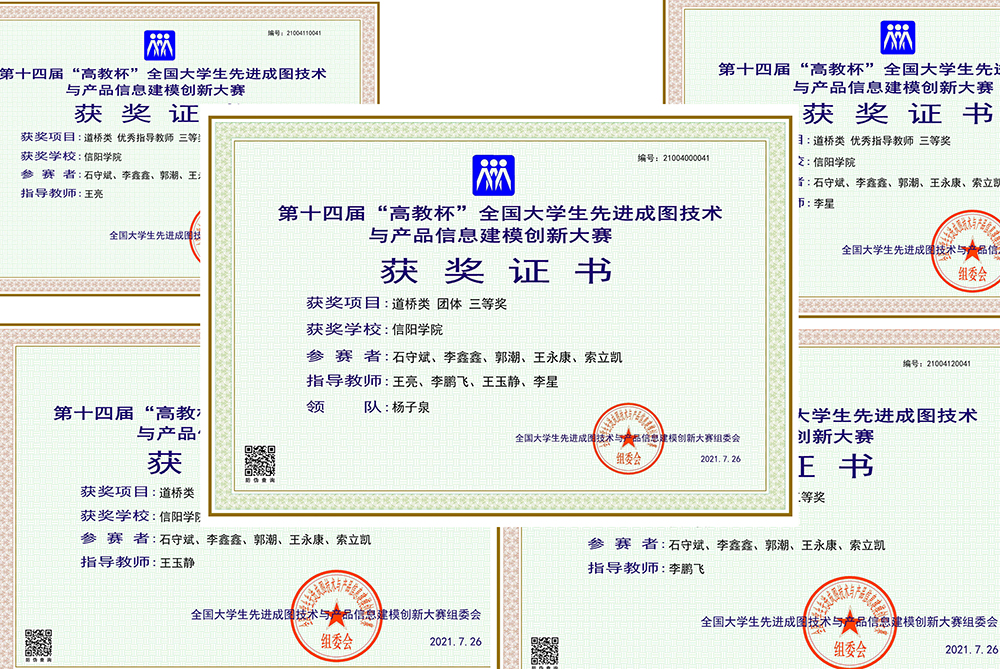 近日,第十四届“高教杯”全国大学生先进成图技术与产品信息建模创新大赛在西南交通大学举办。受疫情影响,此次竞赛采用线上线下相结合的方式进行,共有来自全国各地551所高校1045支队伍6743名选手参加。我校由土木工程学院副院长杨子泉领队,青年教师李鹏飞、王亮、王玉静、李星等任指导教师,2018级土木工程专业王盼石、李鑫鑫、石守斌,2018级工程造价专业郭潮、索立凯,2019级土木工程专业王永康、杜锐光,2020级土木工程专业欧阳圣政、邢培昂共9位学生组成的代表队参加了本次全国总决赛。凭借丰富的知识储备,通过紧张的激烈角逐,我校代表队喜获团体三等奖1项、个人全能二等奖2项、个人全能三等奖1项、优秀指导教师4项,共8个奖项。