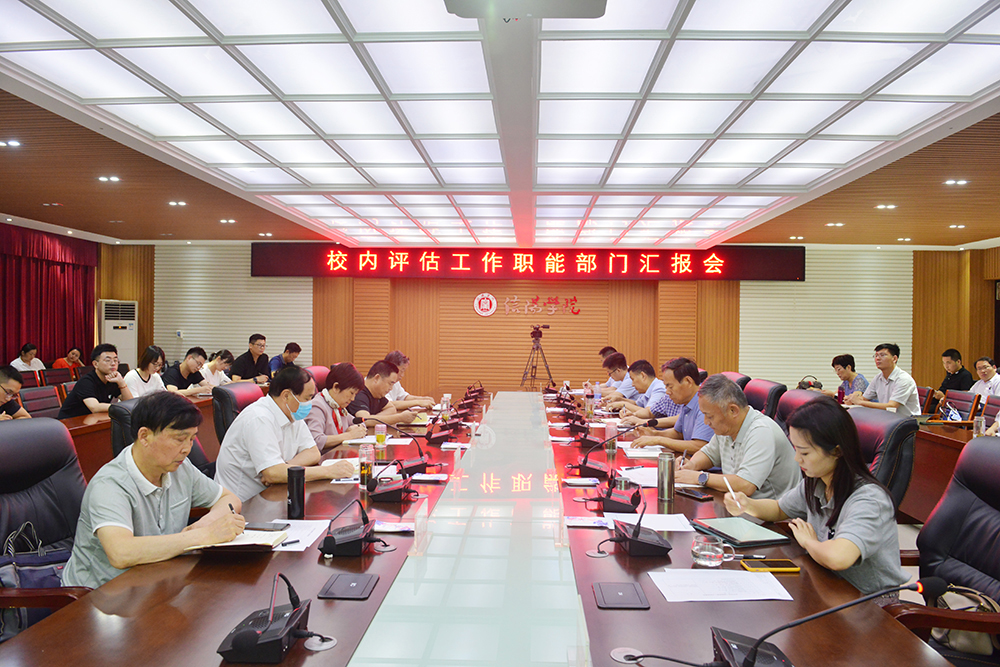 为检视全校各单位开展迎评促建工作的基本情况,把迎评促建工作进一步引向深入,7月8日,学校在人文楼208会议室召开校内评估工作汇报会。郑州师范学院教学质量监测与评估中心主任吕跃森,理事长高云,党委书记褚金海,校长王北生,战略发展咨询委员会主任熊健民,专职副书记施昌海,副校长王志华、王强,工会主席傅洪涛,校长助理高雅、杨高伟、张永志出席会议并担任评委。各职能部门负责人,各学院院长、党总支书记、教学副院长、教学秘书(干事)、行政秘书(干事)、学工秘书(干事)等参加了会议。王强主持了会议。