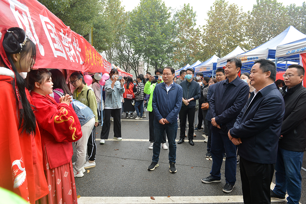 10月9日上午,我校2021年度社团招新活动在理工楼广场隆重举行。校党委书记褚金海、副校长王志华莅临招新现场,指导社团招新工作。党办、校团委等有关部门负责同志,各学院党总支书记、学生工作负责人、团总支书记及社团指导教师,在招新现场共同为社团纳新加油鼓劲。