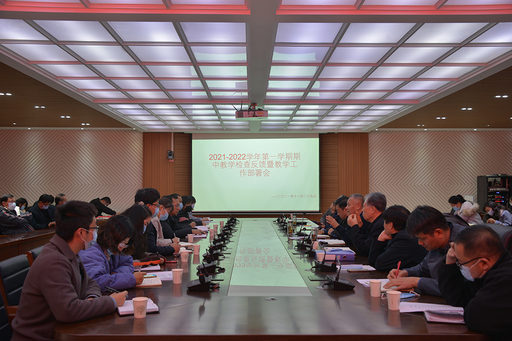 11月29日,学校2021-2022学年第一学期期中教学反馈暨教学工作部署会在人文楼208会议室召开。副校长王强出席会议。教务处处长陈文涛、副处长邓荣娟,教学质量监控中心主任岳中奇,全体专兼职督导专家,各教学单位副院长(主任)、教学秘书(干事),教研室主任及教务处相关人员参加了会议。陈文涛主持了会议。