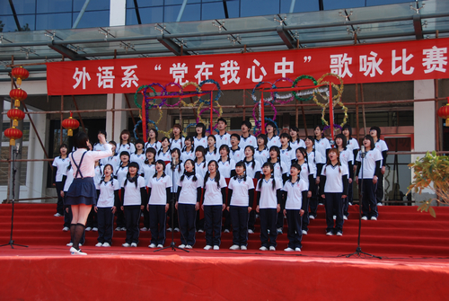 3月27日上午,外语系“党在我心中”歌咏比赛在我院理科楼广场举行。一千三百余名师生在信阳这片神奇的大地上,唱响红色主旋律,抒发广大青年的坚定信念,紧跟党走的情怀。