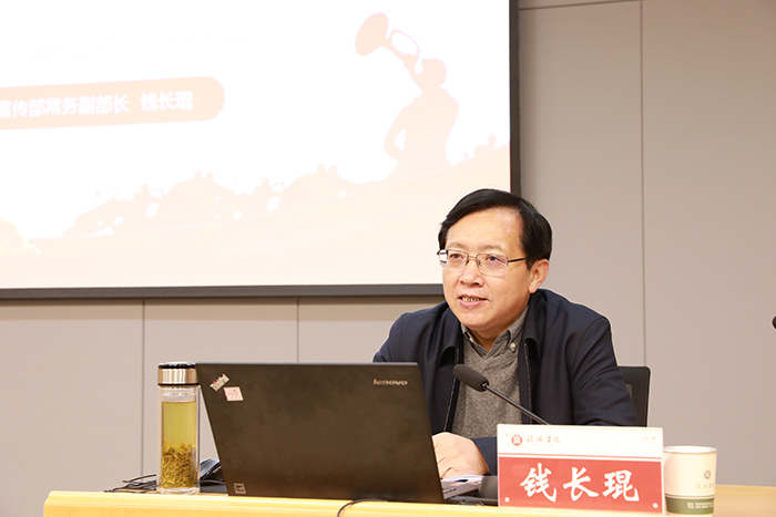 施昌海在主持会议时指出,钱部长既是领导干部,又是专家学者。两个多小时的报告站位高远、内容丰富、联系实际紧密,体现了严肃性、新颖性和深刻性,让大家受益匪浅。对于信阳学院干部师生进一步强化“四个意识”、坚定“四个自信”、做到“两个维护”,奋力打赢迎评促建攻坚战、实现学校“十四五”发展目标具有很强的指导作用。各单位要以此为契机,进一步深入学习贯彻党的十九届六中全会精神,认认真真、原原本本学习决议原文,吃透决议精神,推动党的十九届六中全会精神在学校落地生根、开花结果。