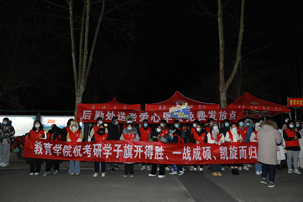 考试期间,学生志愿者早早在学校各路口准备就绪,为爱心车辆引路。在送考点,后勤处设置早餐点,免费为考研学子提供爱心早餐。校外各考点,辅导员们在寒风中坚守岗位,组织校外考试的同学们坐上了学校安排的接考车,让考生顺利往返学校和考点之间,免去了个人乘车的劳累。
