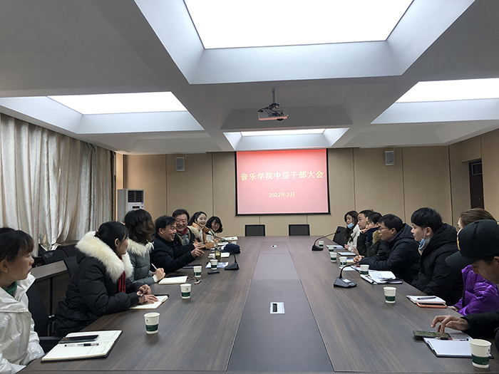 2月18日,施昌海深入音乐学院调研指导工作,出席音乐学院新学期中层干部会议,听取学院工作报告,与大家进行深入交流,肯定学院在迎评促建工作中的积极投入和工作成果,希望大家继续做好三点。一是提振精气神,鼓足工作干劲,团结带领全院师生树立迎评必胜信心。二是做好实际事,致力解决存在问题,争取每一项评建工作都能落实落细。三是打赢攻坚战,以学院评建工作的优异成绩,为学校顺利通过合格评估做出积极贡献。
