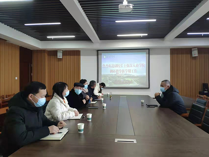 2月21日,王强深入商学院调研指导新学期开学工作,与学院班子成员进行座谈,听取了学院院长关于期初工作和评建工作汇报,对学院各项工作给予了肯定,并提出要求。一是希望全院上下凝心聚力,铆足干劲,以饱满的精神状态投入到评估工作中。二是大家既要不畏惧困难,又要保持高度警惕;既要让优势更“亮眼”,又要让不足快补齐。三是要进一步加强对青年教师培养,多种途径促进青年教师成长,共同提升课堂教学质量。