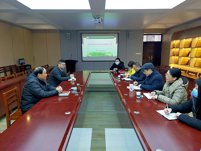 2月20日,王北生深入数学与统计学院调研指导工作。学院班子成员及教研室主任参加了座谈。王北生认真听取了学院领导班子汇报,对学院前期所做工作给予了充分肯定,并就师资队伍建设、教风学风建设、实践教学、教学管理及评建工作等方面提出指导意见。强调学院要进一步强化集体意识和大局意识,使全体教师行动起来,以战斗状态全力以赴投身评建工作;要按照学校阶段进度,把握好迎评工作的各个环节,继续总结经验、查找不足、勇于创新,不断加强内涵建设。