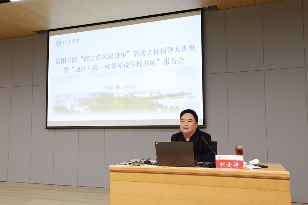 3月8日,学校在图书馆101学术报告厅举办“能力作风建设年”活动之校领导大讲堂暨“迎评六说·校领导说学校发展”报告会。校党委书记褚金海以《大学的产生、发展与新时代中国特色社会主义大学的本质要求》为题,为我校干部教师作了一场生动精彩的辅导报告。校长助理杨高伟和各职能部门负责人,各学院党总支书记、教学副院长、教学秘书、学工秘书(干事)、团总支书记、全体辅导员共同聆听了报告。