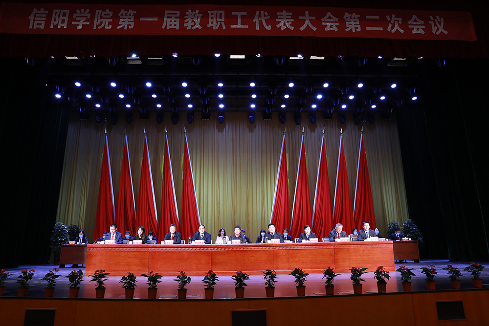 3月12日,信阳学院第一届教职工代表大会第二次会议在音乐厅隆重举行。学校理事长高云,党委书记褚金海,校长王北生,专职副书记施昌海,副校长王志华、王强,校长助理高雅、杨高伟,校长助理、工会副主席张永志等在校领导出席大会。132名正式代表、24名列席代表和16名特邀代表参加了大会。褚金海主持了主席团会议,施昌海、张永志分别主持了第一次全体会议、第二次全体会议。