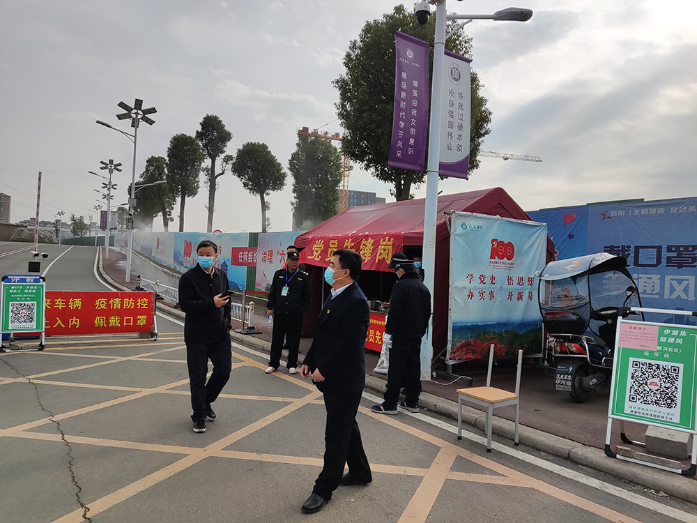 连日来,面对疫情防控的严峻形势,我校严格按照上级疫情防控要求,迅速行动,持续开展疫情防控“党员先锋岗”志愿服务活动,全力筑牢校园疫情防线。在这场没有硝烟的战争中,全校党员干部顾全大局、坚守初心、勇担使命,充分发挥“领头羊”作用,冲锋在前、恪尽职守、无私奉献,连续战斗在疫情防控第一线,用实际行动为师生健康安全保驾护航。学校理事长高云,党委书记褚金海,校长王北生,战略发展咨询委员会主任熊健民,专职副书记施昌海,副校长王志华、王强,校长助理高雅、杨高伟、张永志常态化带班一线指挥疫情防控工作,多次走访慰问抗疫一线的“党员先锋岗”志愿者们和门卫值守人员,表示关心和支持。
