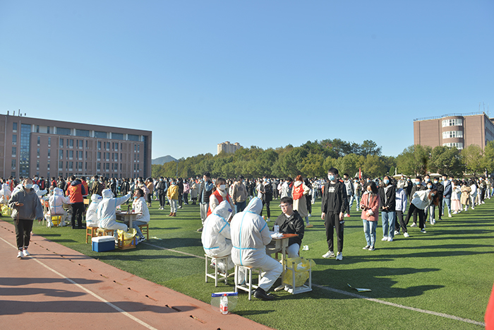 为落实上级对高校全员核酸检测的新要求,校领导要求各单位对全员核酸检测工作要高度重视、周密部署、细化责任,保证全员核酸采集精准到位,不漏一人,不错一人。同时要做好宣传动员,使师生了解疫情防控新形势,积极配合完成全员核酸检测,学校先后于2月23日、3月19日、3月23日主动开展三次全员核酸检测工作,每次采样两万余人,结果全部阴性。