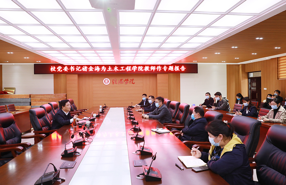 为推进“能力作风建设年”活动走深走实,进一步促进教师能力大提升、作风大转变,近日,校党委书记褚金海分别到教育学院、土木工程学院、文学院、社会科学学院,为教师作了题为《学为人师——怎样做一名好老师》的专题辅导报告。校长助理杨高伟出席土木工程学院报告会。上述学院领导班子成员、全体教师和辅导员以线上线下相结合的方式聆听了报告。教育学院党总支书记张甲楠、土木工程学院党总支书记郭二军、文学院院长毛正天和社会科学学院名誉院长分别主持了报告会。