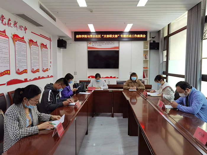 细化方案。为开展好学校与社区“支部联支部”活动,进一步提高基层党组织的创造力、凝聚力、战斗力,切实发挥党建统领基层治理效能,学校紧扣活动要求和双方实际情况,研究制定《信阳学院与五星街道秀水社区、琵琶山社区开展“支部联支部”活动实施方案》,明确职责、细化分工、强化联动。校党委书记褚金海亲自过问此项工作,提出指导意见,要求确保活动有序有效推进。