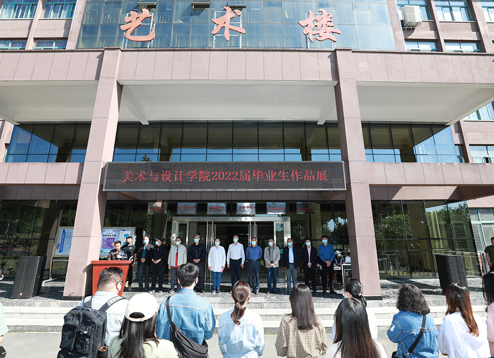 5月2日下午,美术与设计学院2022届毕业创作/设计作品展开幕式在艺术楼前广场举行。副校长王志华、王强出席了开幕式,教务处处长陈文涛,科研处处长江成顺,评建办常务副主任张富庄,校地方民俗文化研究中心负责人、马克思主义学院党总支书记陈金强,美术与设计学院院长张瑞瑞、党总支书记袁军、教学副院长王伟以及学院专家教授、指导教师和毕业生参加了开幕式。袁军主持了开幕式。