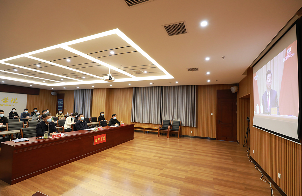 在综合楼1511会议室,校党委书记褚金海、专职副书记施昌海,副校长王志华,党办、组织部、宣传部、团委等有关部门负责人和部分师生代表共同观看了大会直播。其他师生代表在各学院会议室观看了大会直播。