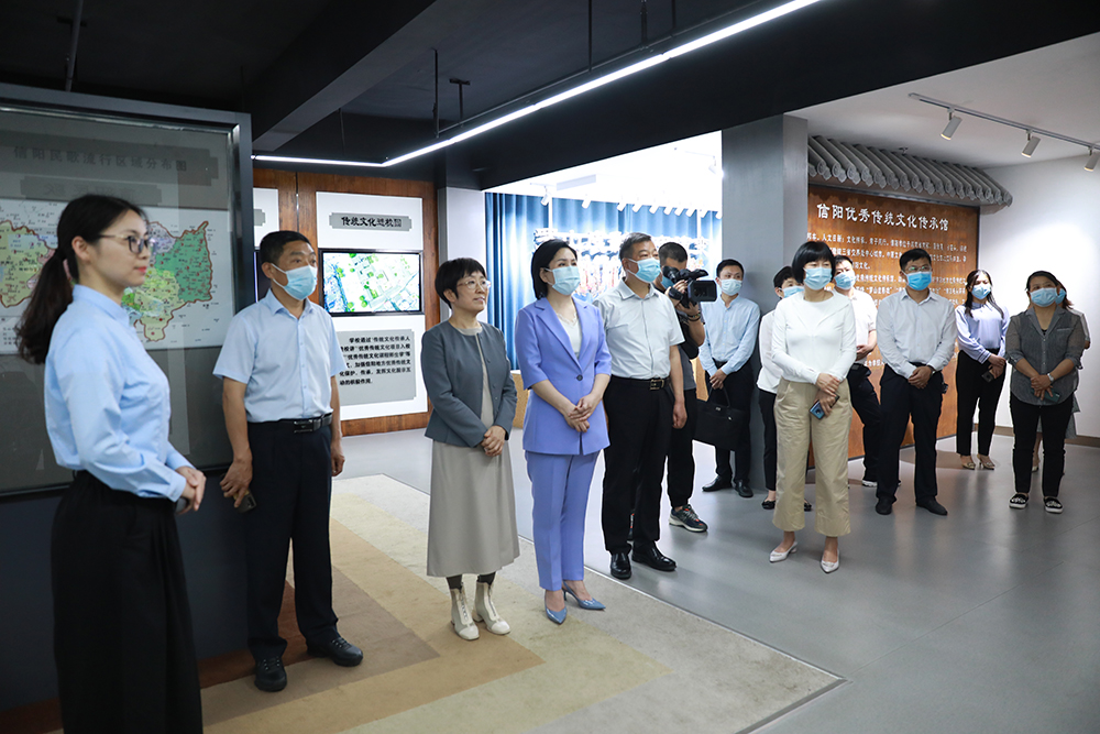 曾辉对我校注重传承馆馆藏建设、推进非遗进校园、拓展教学科研平台等表示高度赞赏,对民进信阳市委与我校开展协同合作,深入田野调查,深度参与非遗项目申报,强化校地互动、教学相长,创造性传承与发展地方优秀传统文化给予充分肯定。希望学校和有关单位进一步加强校地、校会合作,持续开展传统文化进校园工作,发挥中华优秀传统文化优势,弘扬社会主义核心价值观,全力彰显统一战线的担当作为,为加快老区振兴、加速绿色崛起汇聚智慧和力量。