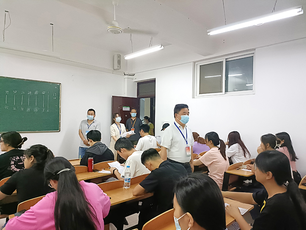 5月29日,我校2021-2022学年第二学期期末考试正式拉开帷幕,全校公共课首先开考。为加强考试的组织管理和考风建设工作,确保考试工作顺利进行,理事长高云,校党委书记褚金海,校长王北生,战略发展咨询委员会主任熊健民,专职副书记施昌海,副校长王志华、王强,校长助理杨高伟、张永志等在校领导深入期末考试现场进行巡视检查。