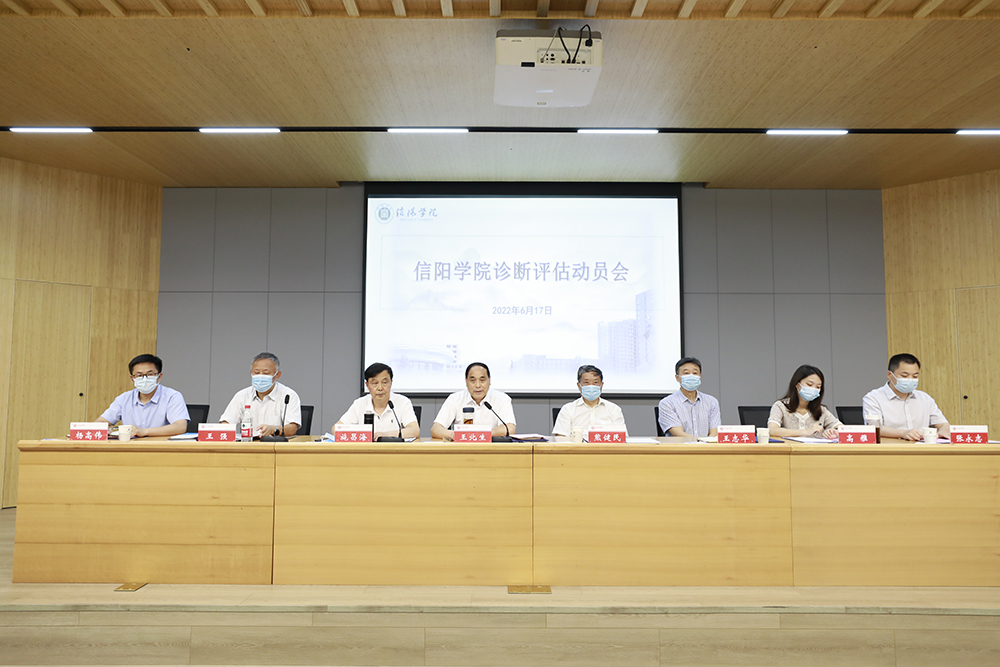 为统一思想认识,明确目标任务,切实推动诊断评估工作取得应有成绩,6月17日,学校在图书馆101学术报告厅召开诊断评估工作动员会。校长王北生,战略发展咨询委员会主任熊健民,党委专职副书记施昌海,副校长王志华、王强,校长助理高雅、杨高伟、张永志等在校领导出席会议。各学院院长、书记、教学副院长、教学秘书、行政秘书、学工秘书,各部门负责人和负责评估工作同志参加了会议。施昌海主持了会议。