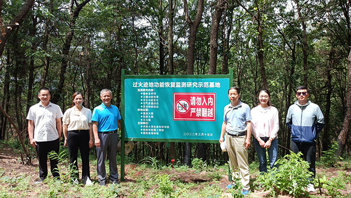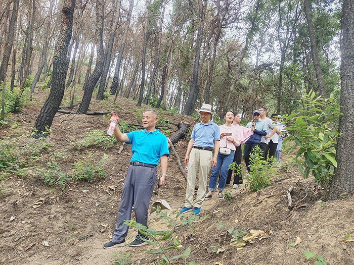 在野外实地考察中,高进勇介绍了大别山森林生态系统野外科学观测研究站南湾站点的基础设施与野外实验样地有关情况。其中,包括学校参与设置的大别山过火森林生态系统无火烧、轻度火烧和重度火烧样地等。