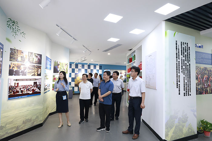 褚金海一行受到了信阳农林学院的热烈欢迎,在信阳农林学院党委书记余作斌、党委副书记黄松、副校长赵一鹏以及党委组织部、党委办公室、宣传部、学工部等部门负责同志的陪同下,参观了信阳农林学院大学生众创空间、校史馆,并考察了耕读文化和乡村振兴展览馆、教师发展中心、耕读教育实践基地、大别山生物多样性标本馆建设情况。