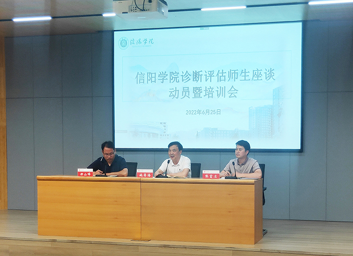 师生座谈组组长郑山峰和评估办常务副主任张富庄分别就评估中师生常见问题及校情校训,如专家访谈的目的、访谈的方式、接受访谈应注意的问题、访谈的基本要求、访谈的内容等方面等进行了培训交流。