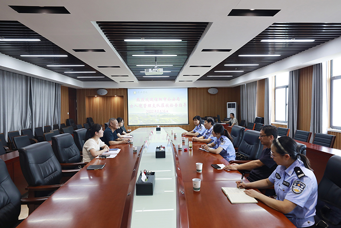 8月16日,市公安局出入境管理支队支队长李远城、政委白卫华、党支部委员胡莹莹一行到我校调研指导外籍人员管理工作。学校在综合楼1410会议室举行座谈会。副校长王强出席会议。国际处、保卫处等部门相关人员参加了会议。国际处负责人芦金凤主持会议。