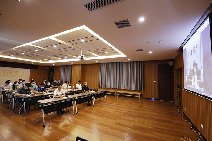 我校在综合楼1511会议室集中收看开班仪式,校党委专职副书记施昌海、副校长王强出席开班仪式,教务处、宣传部、教师工作部等部门负责同志和各学院党总支书记参加了集中研修和分散研修,1000余名教职工同步收看了集中研修和结业仪式。