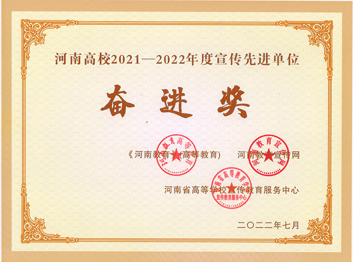 近日,河南教育新闻中心、河南教育高等教育编辑部、河南教育宣传网联合印发《关于公布河南高校2021—2022年度宣传先进单位、优秀通讯员、优秀新闻作品评选结果的通知》,我校获评“河南高校2021—2022年度宣传先进单位(奋进奖)”,官方新媒体温婧(文学院2021级汉语国际教育本科1班学生)、王瑞(教育学院2020级心理学本科1班学生)的《信院女神老师驾到,不一样的“她”!》获优秀新闻作品二等奖,校报记者团张秀莉(文学院2019级汉语言文学本科5班学生)的《筑牢疫情防控“战斗堡垒”,让党旗飘扬在战疫最前线》获优秀新闻作品三等奖,宣传部白杨被评为“优秀通讯员”。