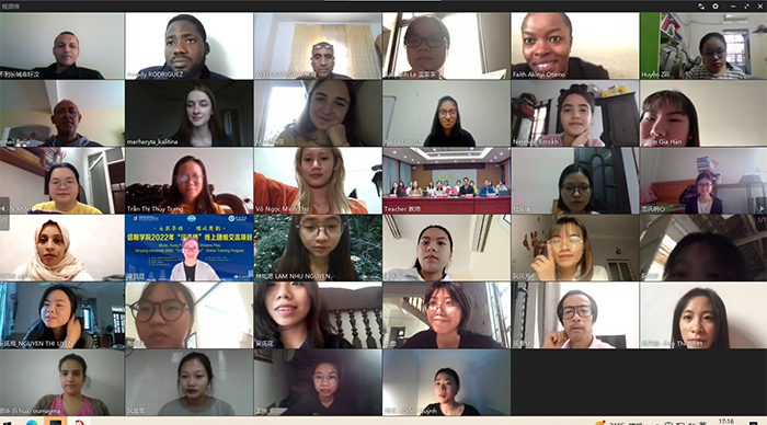 11月6日,由教育部中外语言交流合作中心主办、信阳学院承办的2022年度“汉语桥”线上团组交流项目——“乐武茶戏、豫风楚韵”线上闭营仪式在我校成功举办。学校国际合作与交流处负责人芦金凤,团组教师陈丽、董文静、田冲、袁卫藏以及学生助理们参加了闭营仪式。