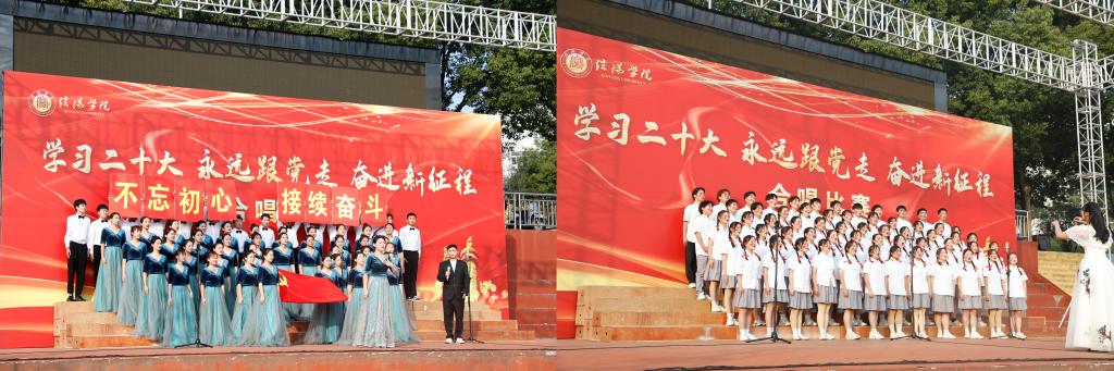 为深入学习宣传贯彻党的二十大精神,丰富学习形式,大力营造浓郁的学习氛围,进一步凝聚起全体师生奋进新时代、建功新征程的磅礴力量,11月17日下午,学校在东区田径场举办了“学习二十大 永远跟党走 奋进新征程”合唱比赛。